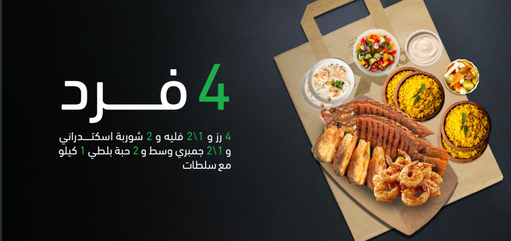 4 رز و 1\2 فليه و 2 شوربة اسكتدراني و 1\2 جمبري وسط و 2 حبة بلطي 1 كيلو مع سلطات