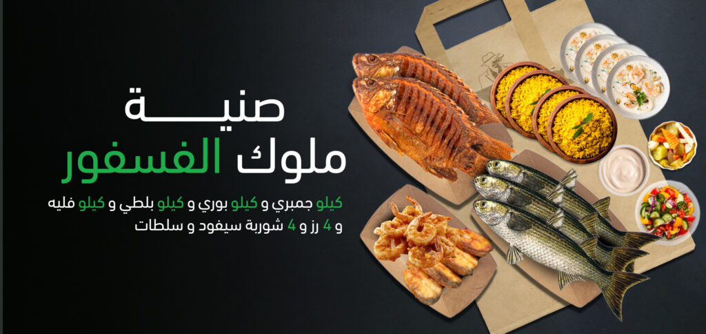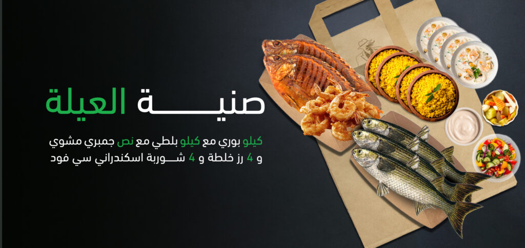 كيلو جمبري و كيلو بوري و كيلو بلطي و كيلو فليه و 4 رز و 4 شوربة سيفود و سلطات